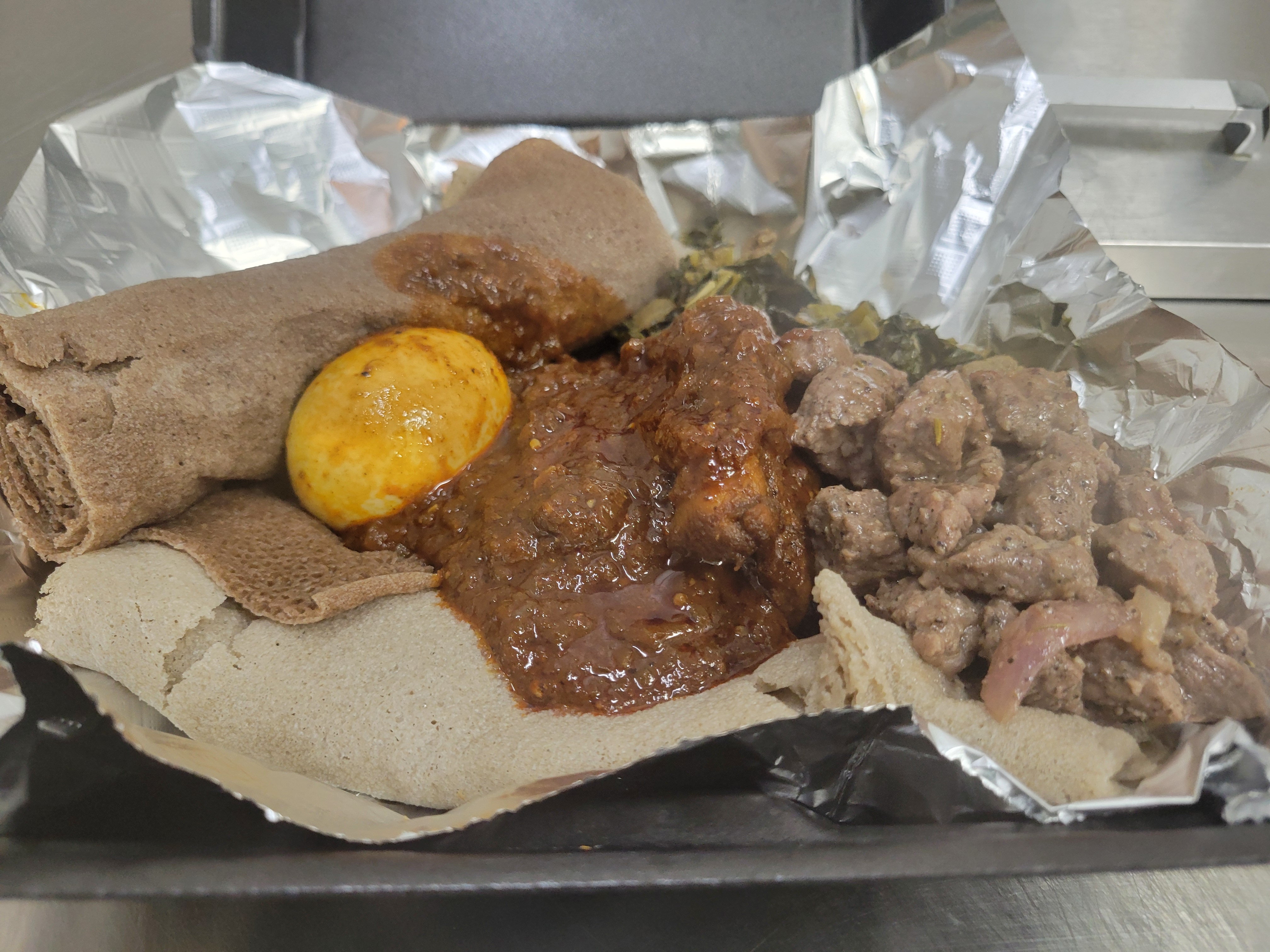 Quick-cooked beef sautéed with onions, garlic, rosemary, and warm Ethiopian spices.